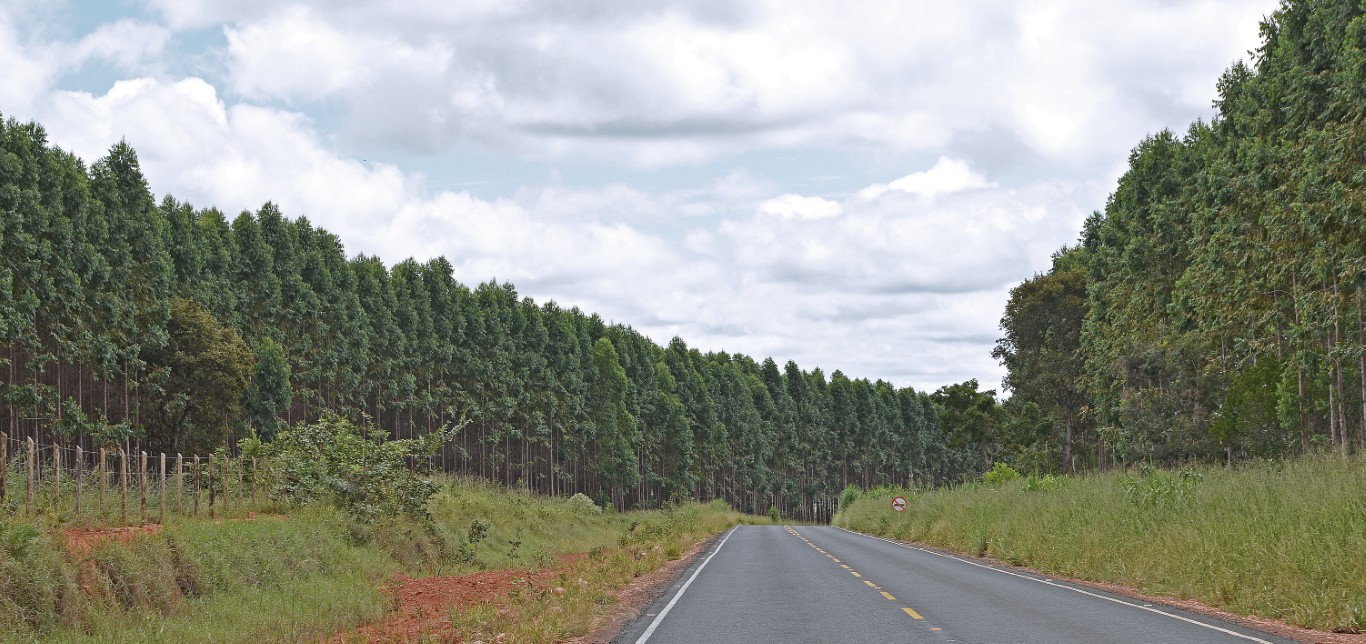 Großflächige Zerstörung der Cerrado-Lanschaft durch die Einrichtung von Eukalyptos-Plantagen